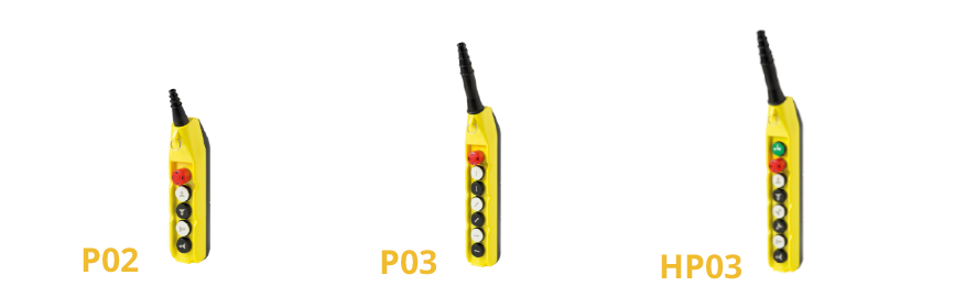 P02 - Jednoradový závesný ovládač s tromi otvormi pre malý kladkostroj