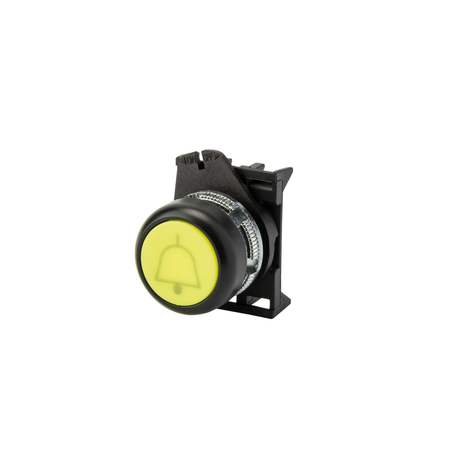 Ploché tlačítko, žlutá barva, průměr hlavy 30mm,průměr díry 22mm, IP65