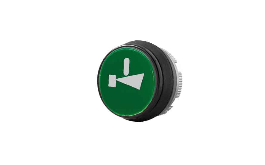 Bílý znak start/houkačka na zeleném podkladu