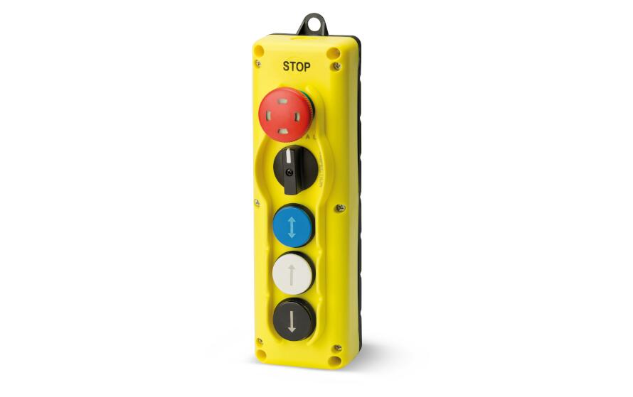 STOP 1NC, PŘEPÍNAČ 1-2 2NO,4NC, SPOLEČNĚ 1NO, NAHORU 2NO, DOLŮ 2NO, IP65