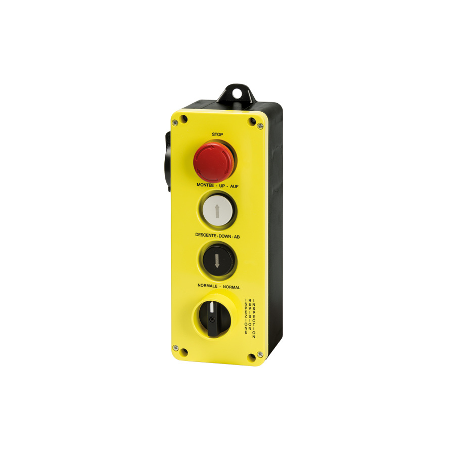 E-STOP 1NC+šipka nahorů 2NO+šipka dolů 2NO+přepínač 2NO2NC-inspekční jízda,zásuvka Cenelec