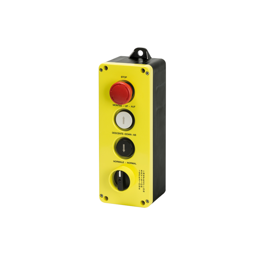 STOP talíčtko s aretací 1NC, tl. nahoru 2NO + dolů 2NO, přepínač 1-2 NO + 2NC, IP65