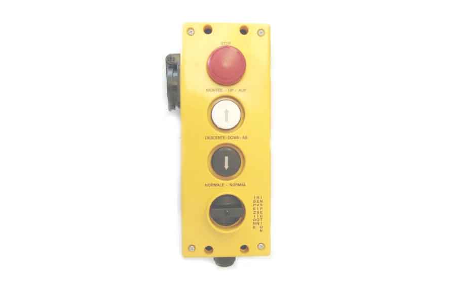 E-STOP 1NC+šipka nahorů 2NO+šipka dolů 2NO+přepínač 2NO2NC-inspekční jízda,zásuvka Cenelec