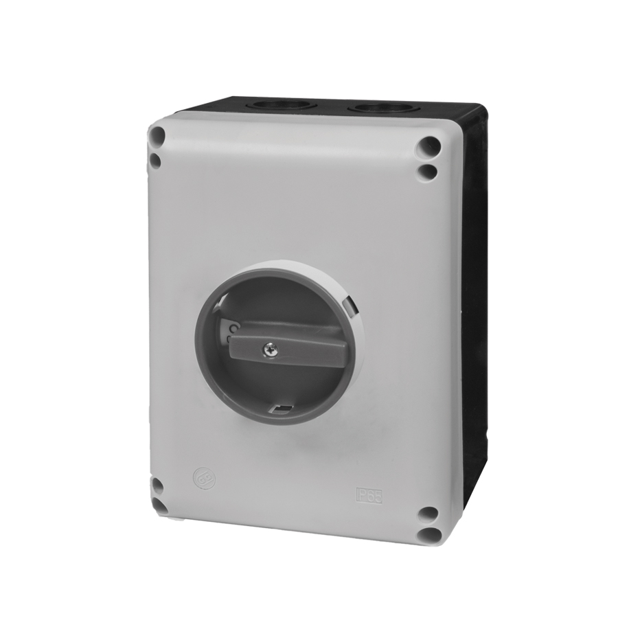 Proud do 67A AC23/400V, 3-pólový, černá krabice, šedý kryt, uzamykatelná hlavice, IP65