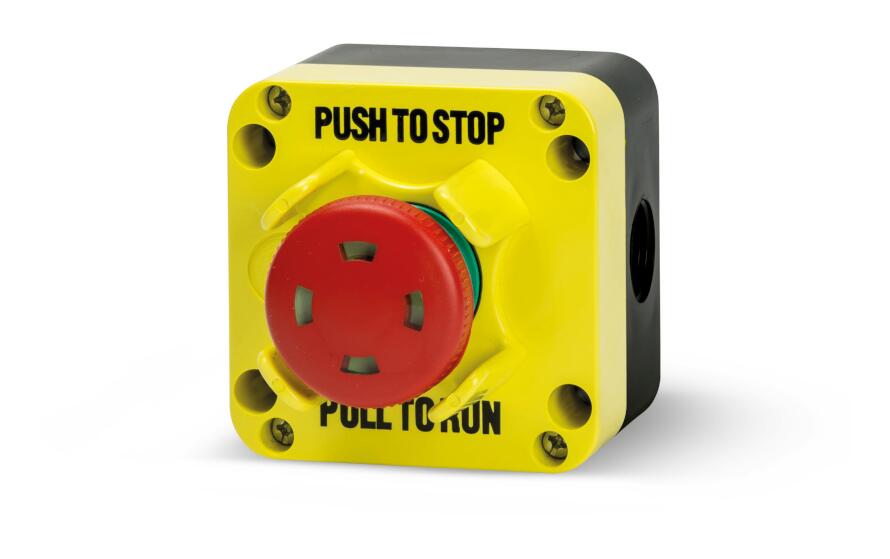 Krabička se Stop tlačítkem, klíč vyjímatelný v poloze 0, rozměr: tlačítka – 40mm, krabičky