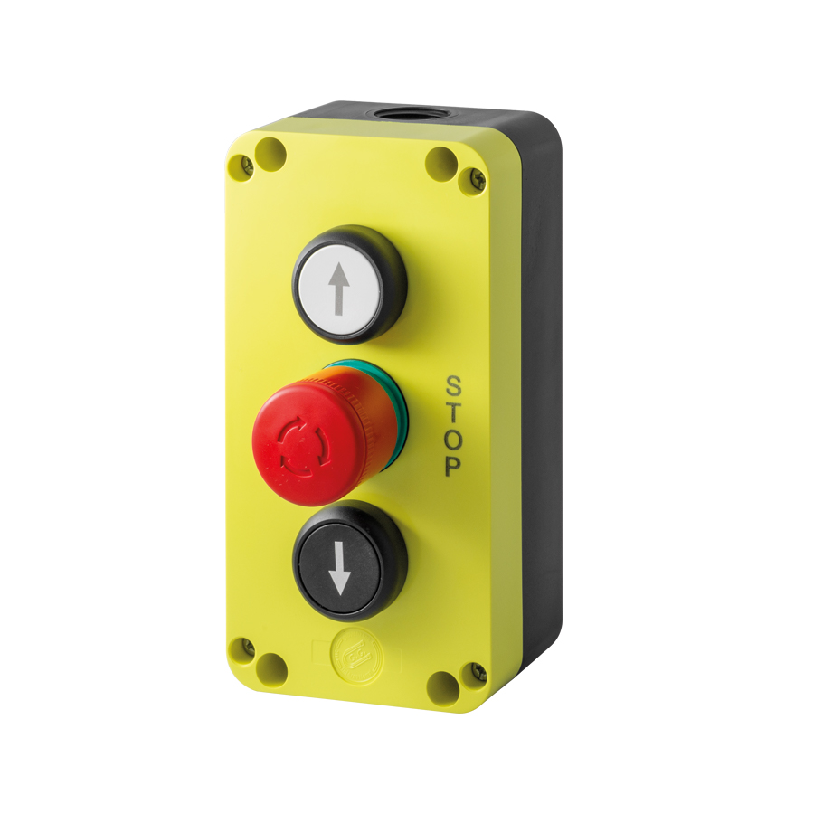 Tlačítko nahoru – 1NO, bezpečnostní tlačítko – 1NC, tlačítko dolů – 1NO, rozměr 145x75mm