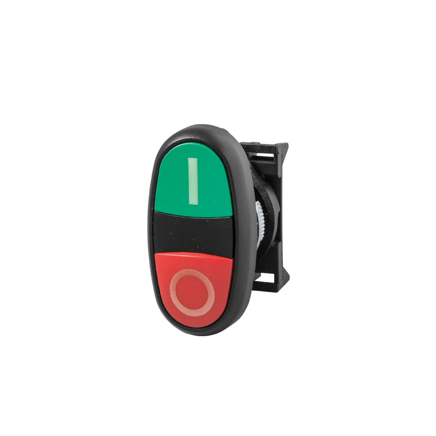 Multifunkční tlačítko, 2pozice ( zelená I, červená vystouplá O), průměr díry 22mm, IP65