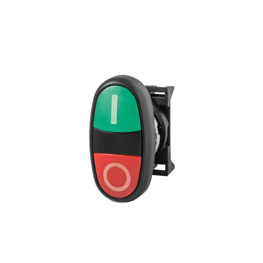 Multifunkční tlačítko, 2pozice (zelená I, červená O), IP65