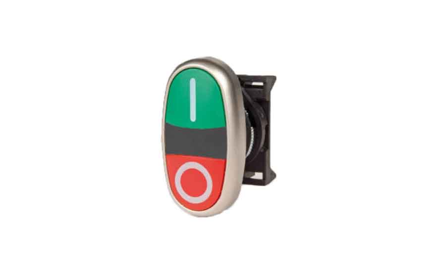 Multifunkční tlačítko, 2pozice (zelená I, červená O), IP67